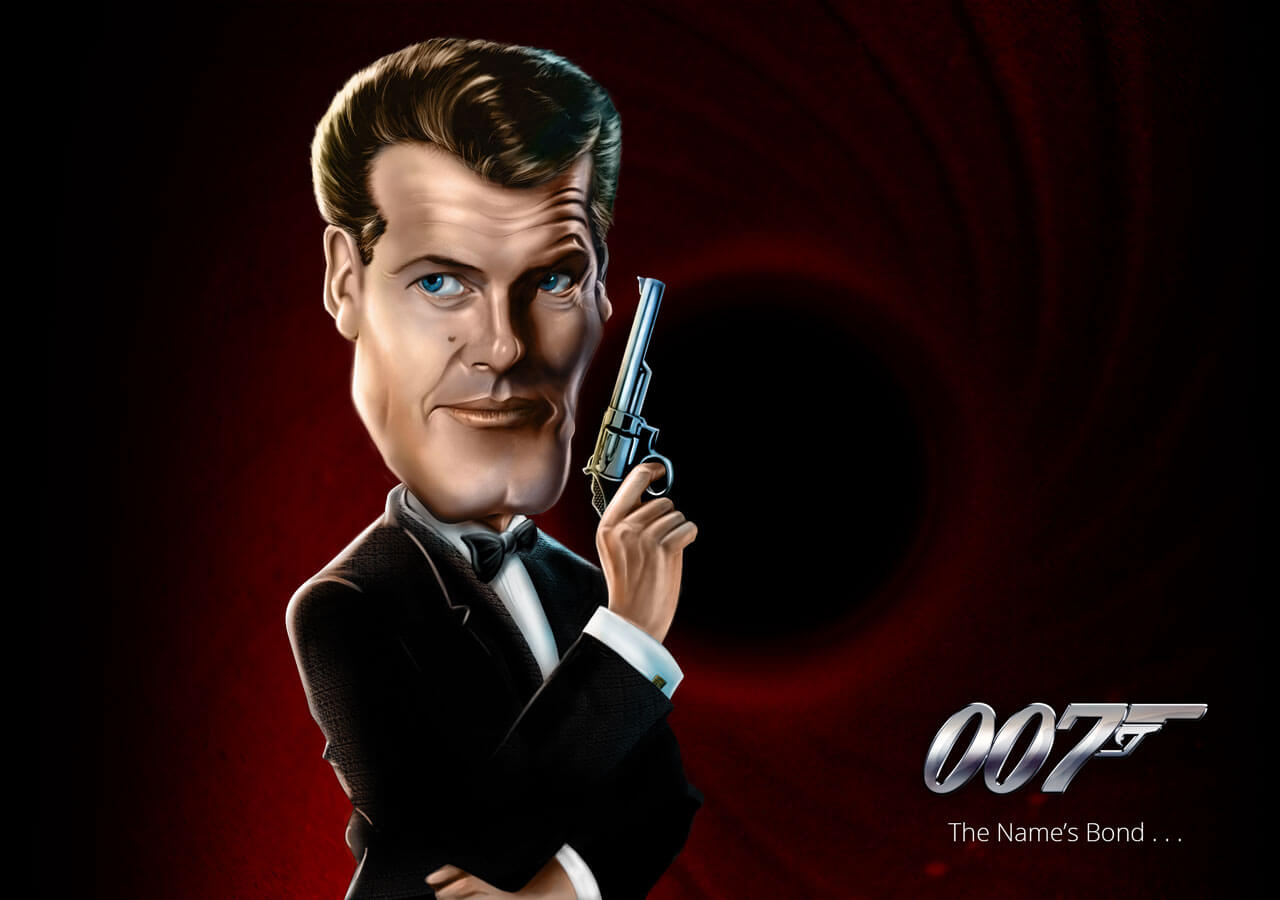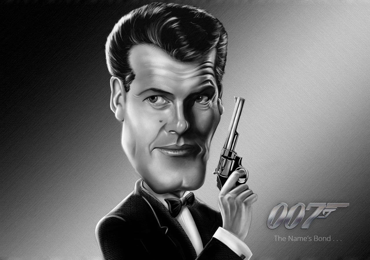 My Caricature of Sir Roger Moore in his role as the iconic James Bond.